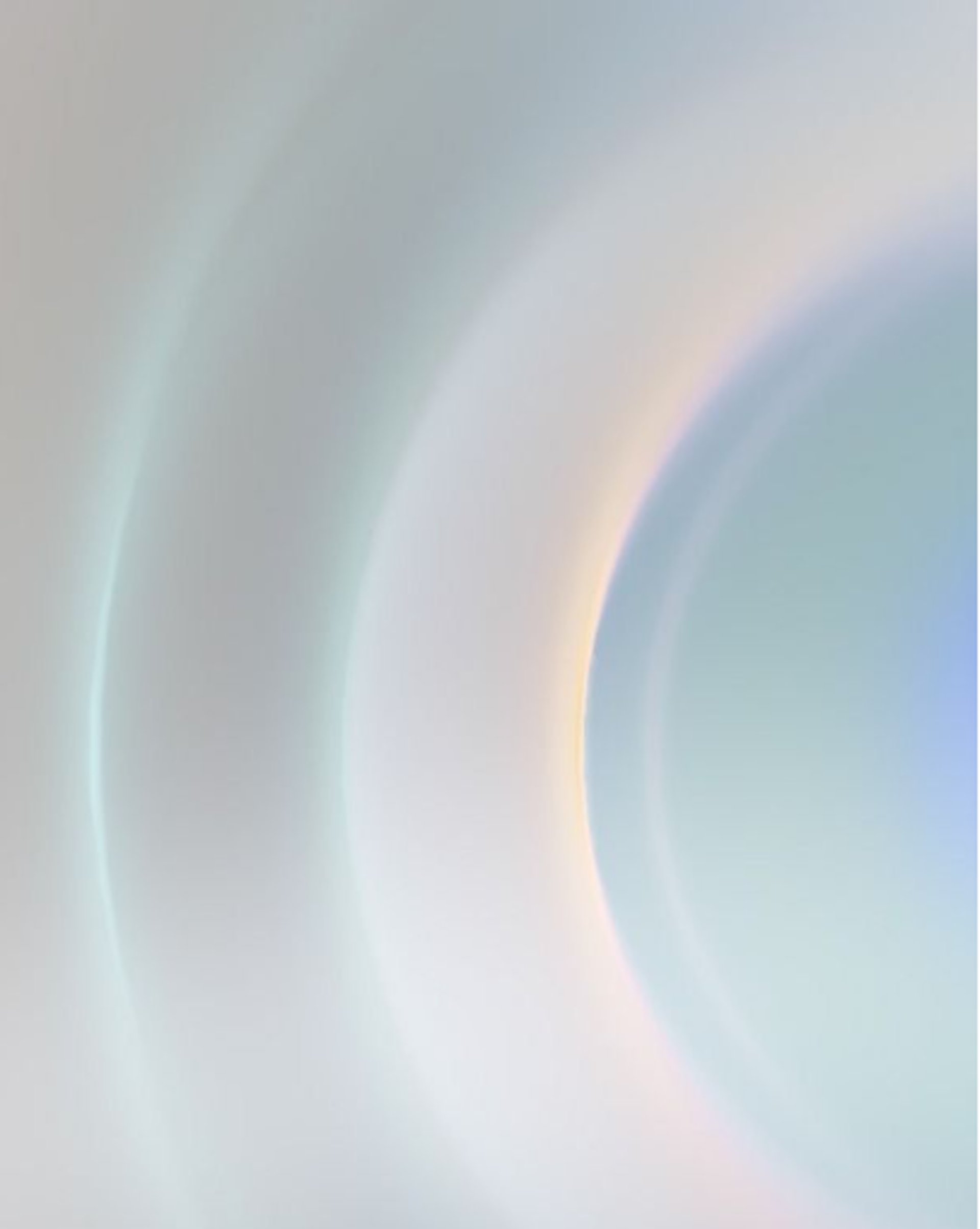 A professional doctor in a sleek, modern clinic, smiling warmly with soft teal and blue gradient glassmorphism background.